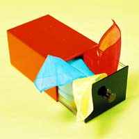 「スーパー引出箱」(W5411)のコンパクトでしかも透明な製品です。 マジシャンは、アクリル製の箱(約、縦15 cm・横10 cm・高さ8.5